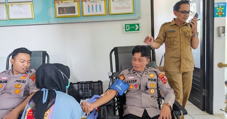 Kapolsek Tanggeung Polres Cianjur, IPTU Budi Setia Yuda, bersama anggota melaksanakan kegiatan bakti sosial donor darah yang bertempat di UPTD Puskesmas Tanggeung, Kampung Pasar Kolot, Desa Tanggeung, Kecamatan Tanggeung, Kabupaten Cianjur, Selasa (21/4/2026). Kegiatan ini merupakan bentuk kepedulian Polri terhadap kemanusiaan sekaligus upaya mempererat hubungan dengan masyarakat.